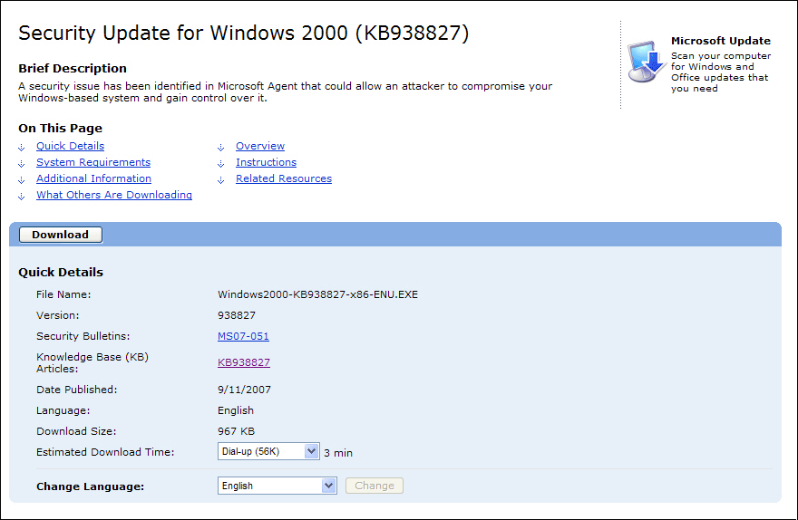 In the Security Bulletin, the Affected Software table lists the software affected by this patch, and provides a link to the download page for that specific patch: