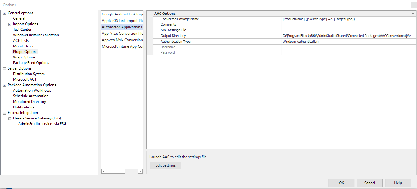Edit SettingsClick to edit the specified Automated Application Converter project file. See Editing the Default Automated Application Converter Settings File From Application Catalog.