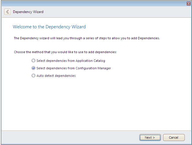 Auto-detect dependenciesSelect this option if you want Application Manager to automatically detect dependent packages. To do this, Application Manager will automatically scan the file headers of Windows Installer packages to determine if any dependencies exist.