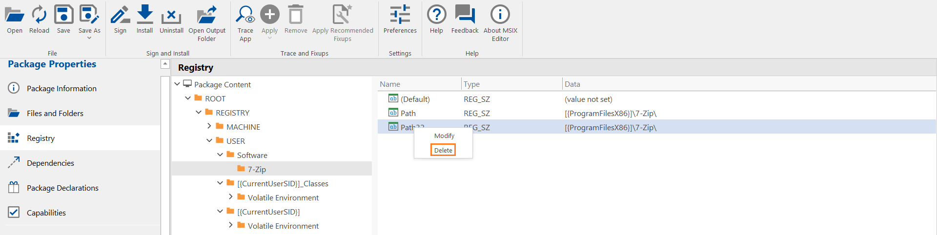 2. In the Registry pane, right-click the registry key or registry value that you want to delete, and then click Delete.